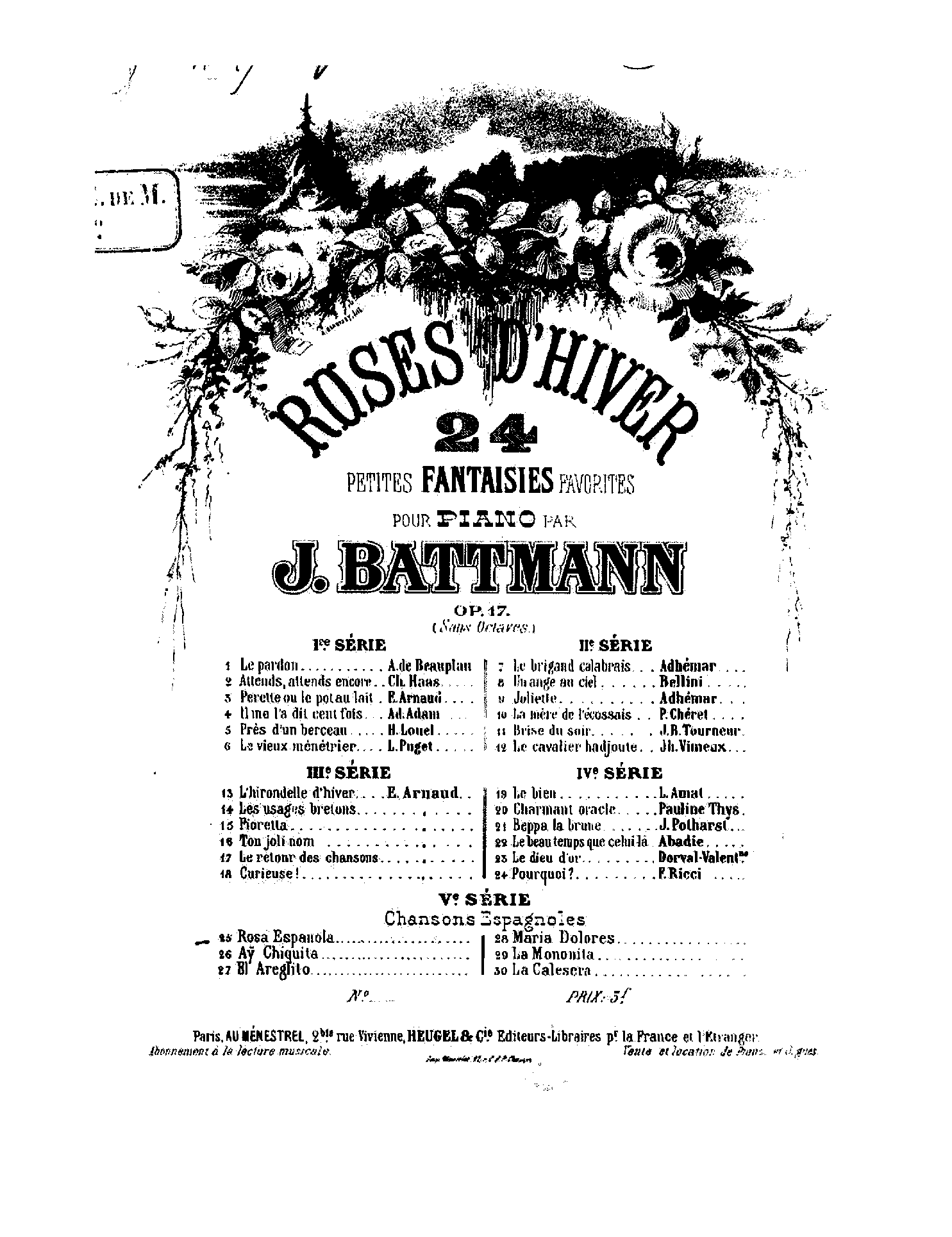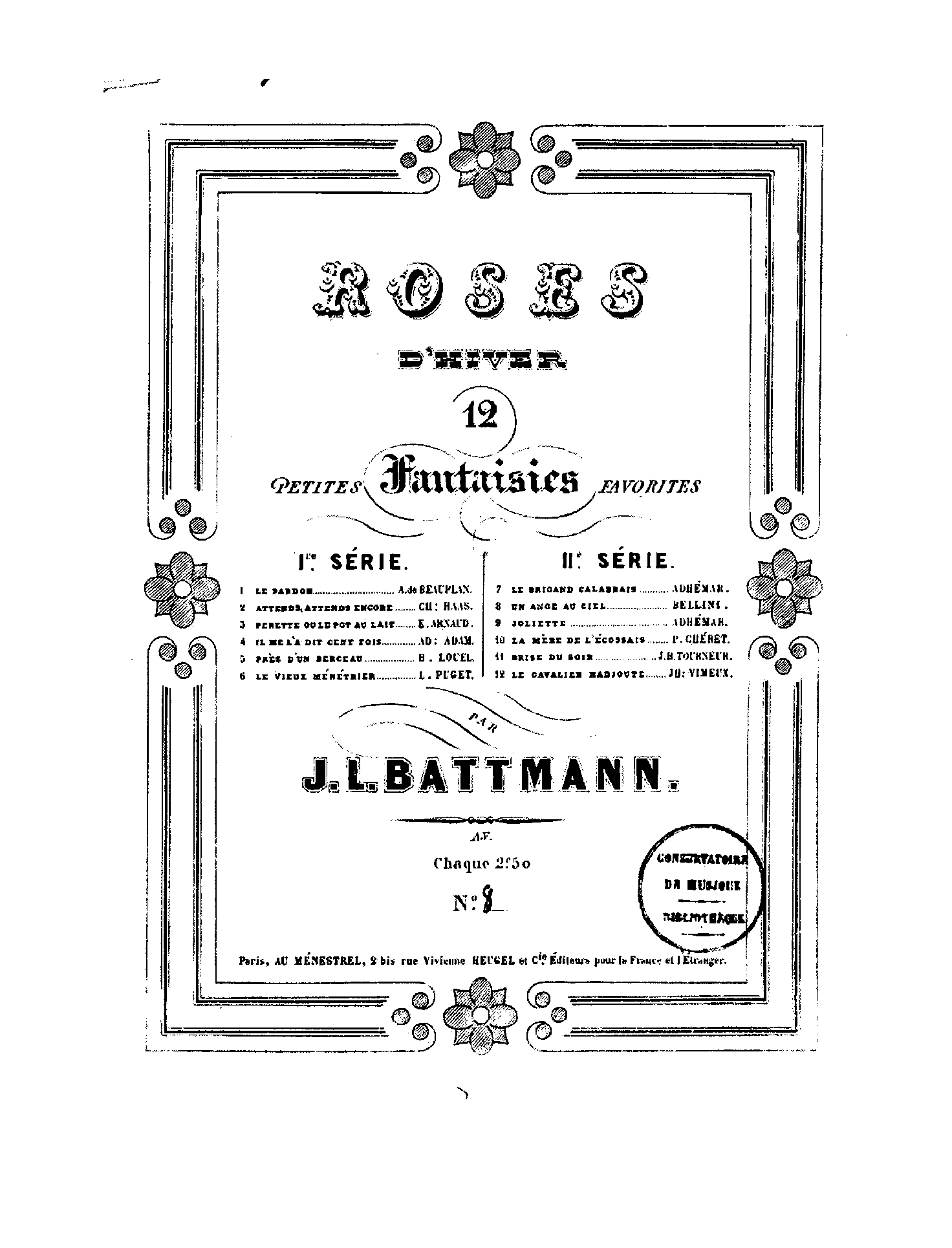 ⇒ 4 more: 9. Joliette (Adhémar) • 10. La mère de l'écossais (P. Chéret) • 11. Le cavalier hadjoute (Jh. Vimeux) • 12. Brise du soir (J. B. Tourneur) incomplete