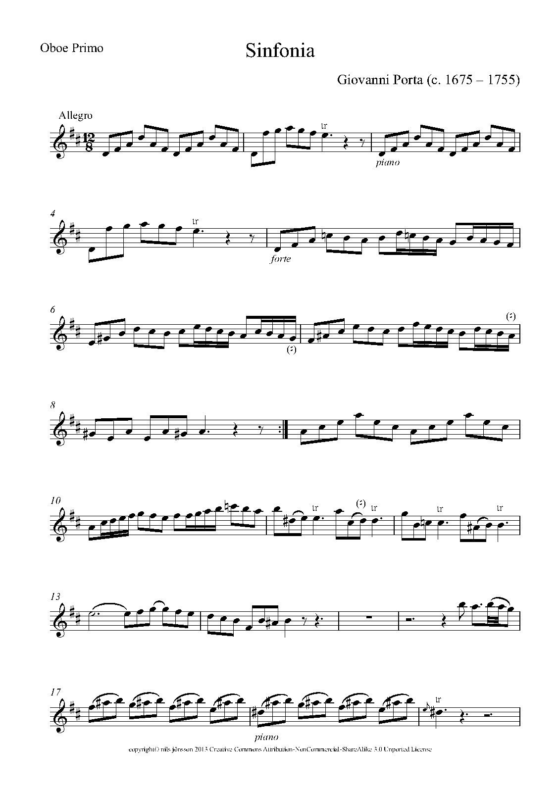 | Alternative. Title | Sinfonia in Re maggiore per due oboi, archi e basso continuo |