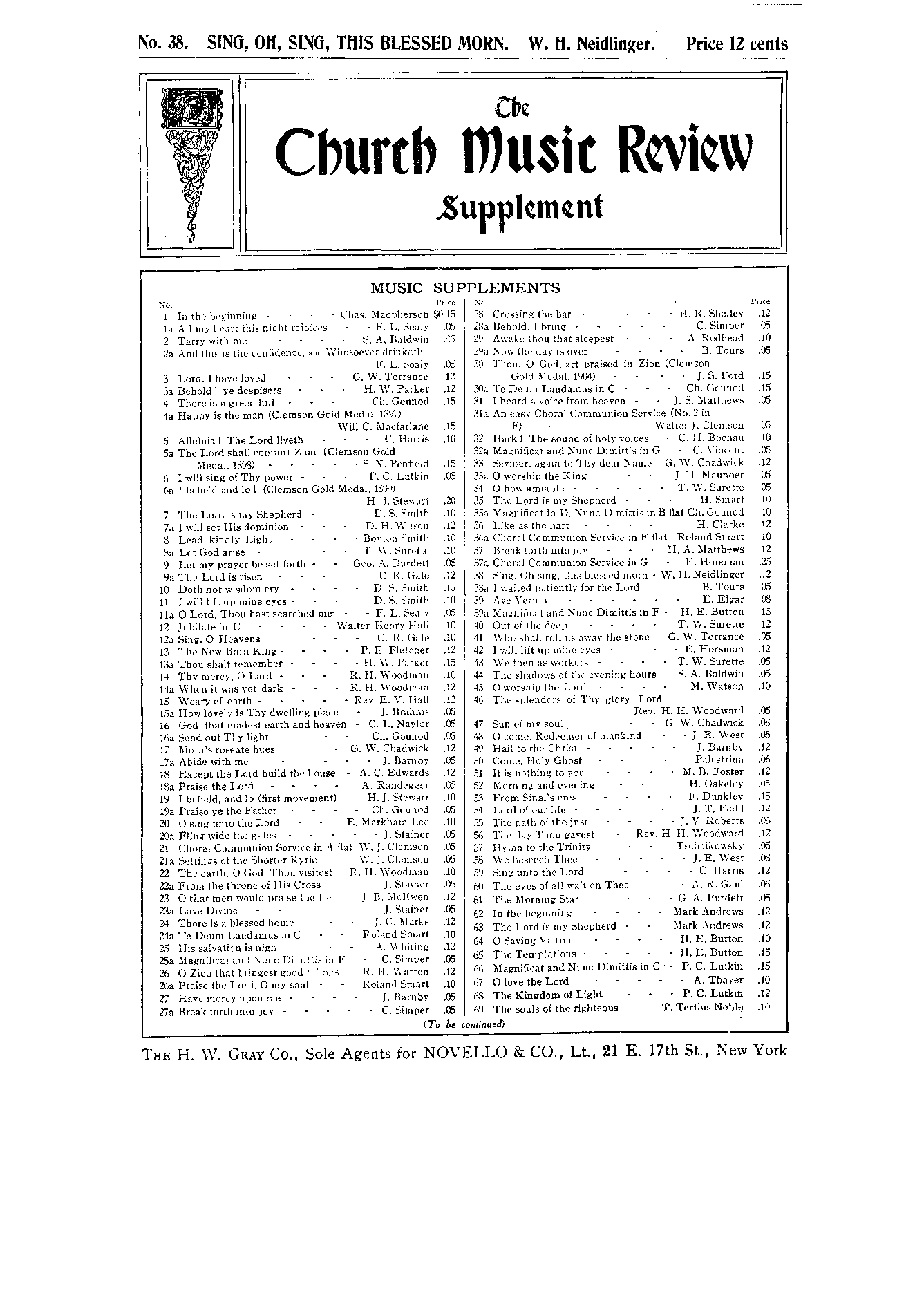 The Church Music Review Supplement No.38. New York: H.W. Gray (agent for Novello, Ewer and Co.), 1904.
