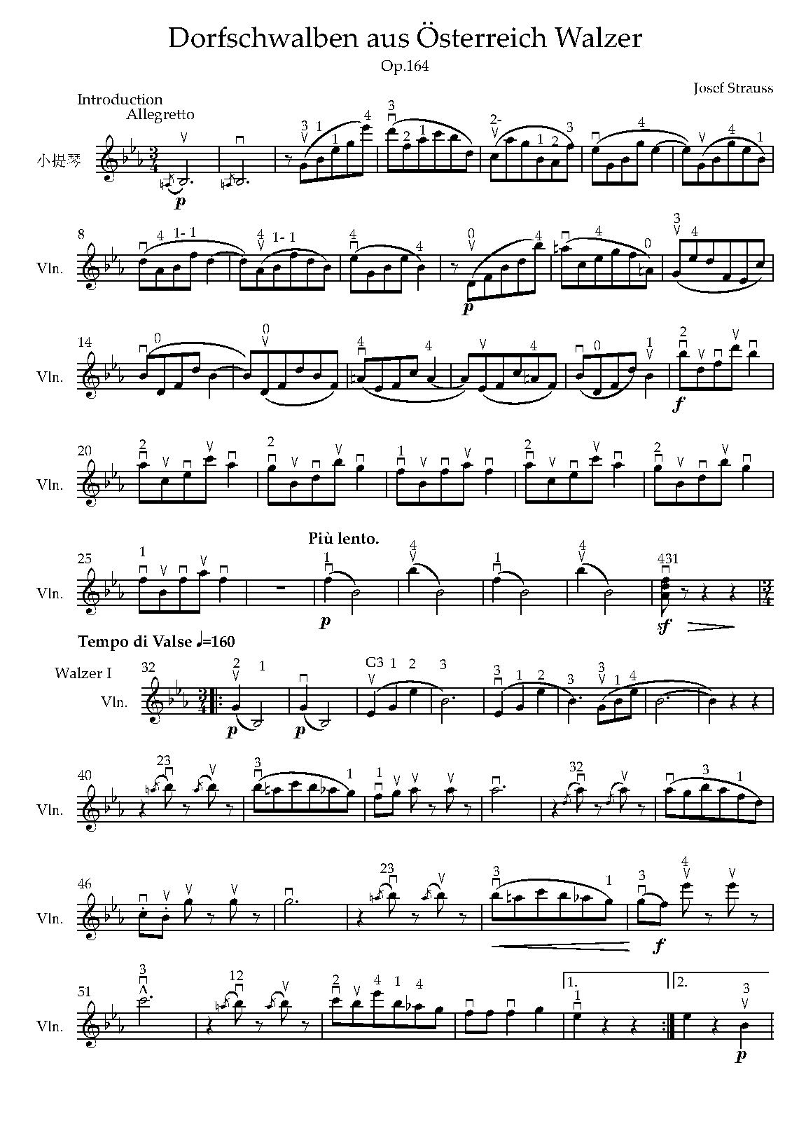 | Work Title | Solo for Violin from Strauss's 'Dorfschwalben aus Österreich, Op.164' |