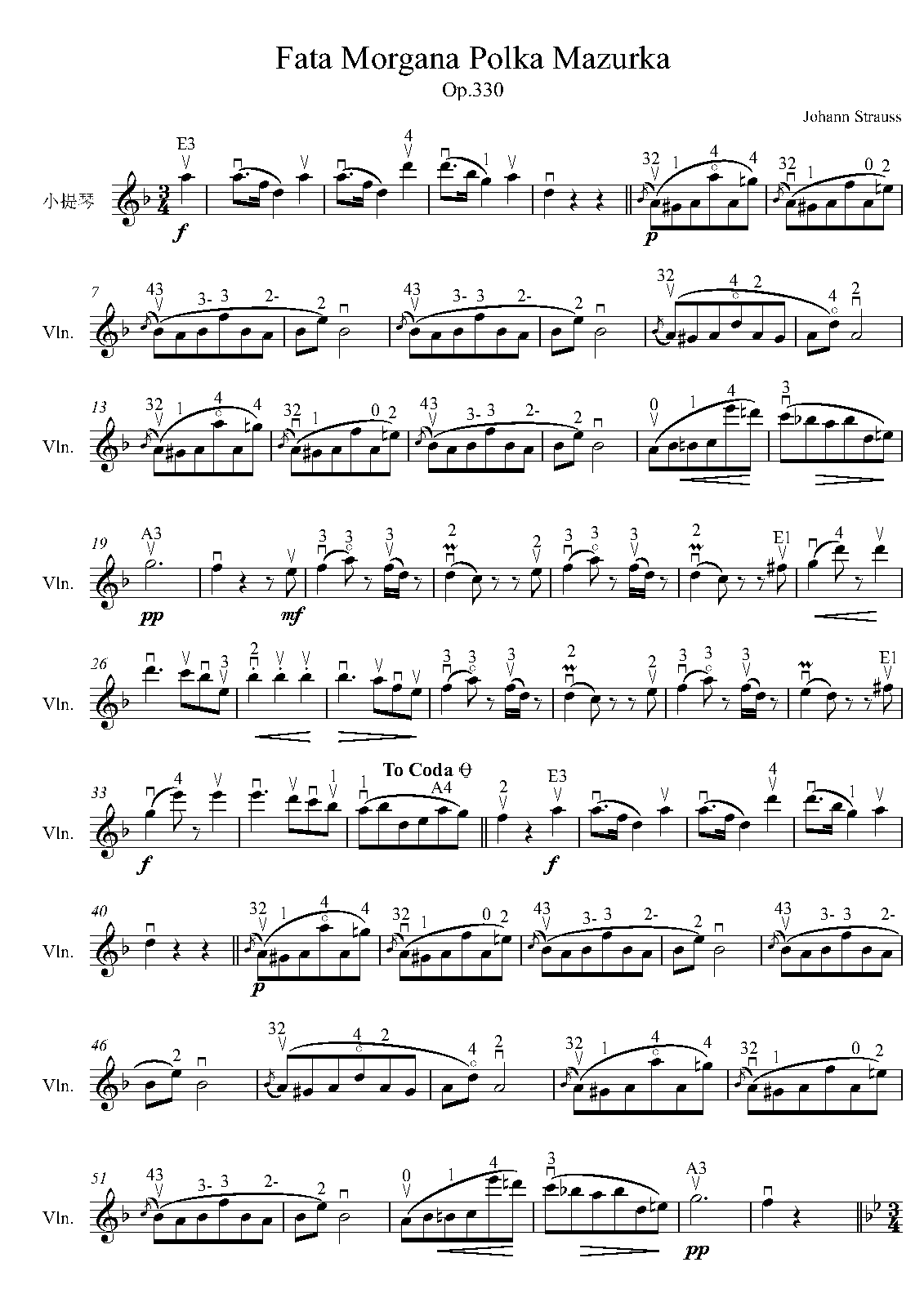 | Work Title | Solo for Violin from Strauss's 'Fata Morgana, Op.330' |