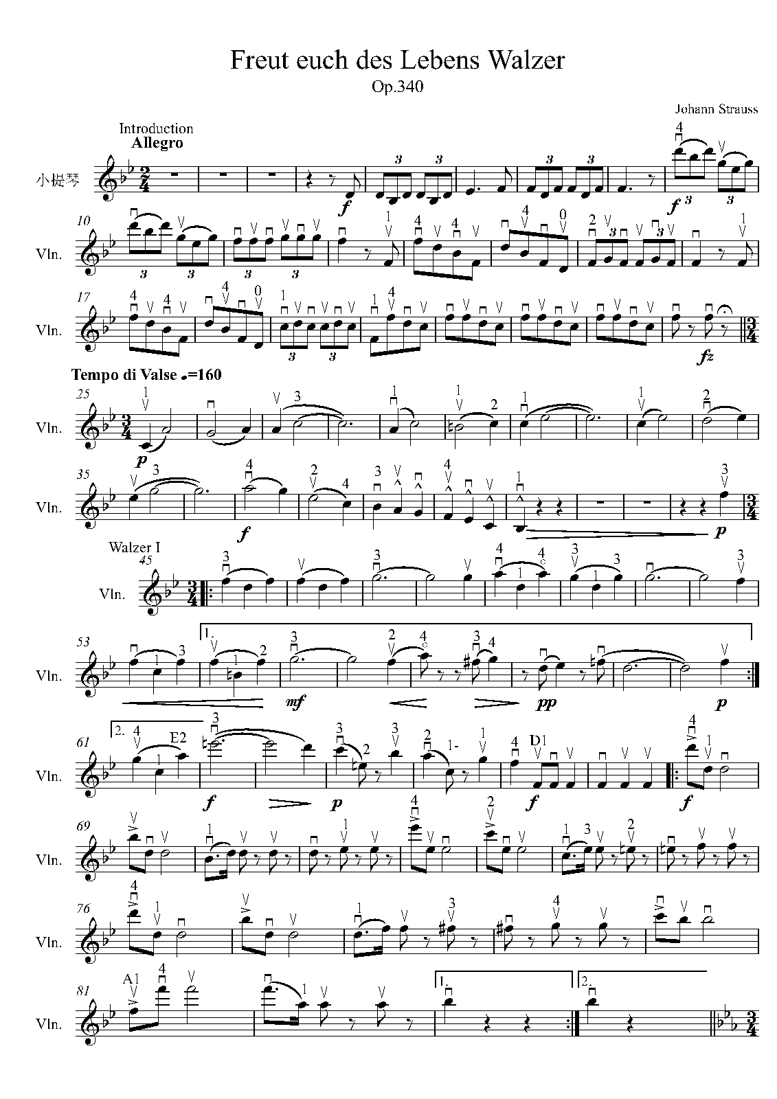 | Work Title | Solo for Violin from Strauss's 'Freut euch des Lebens, Op.340' |
