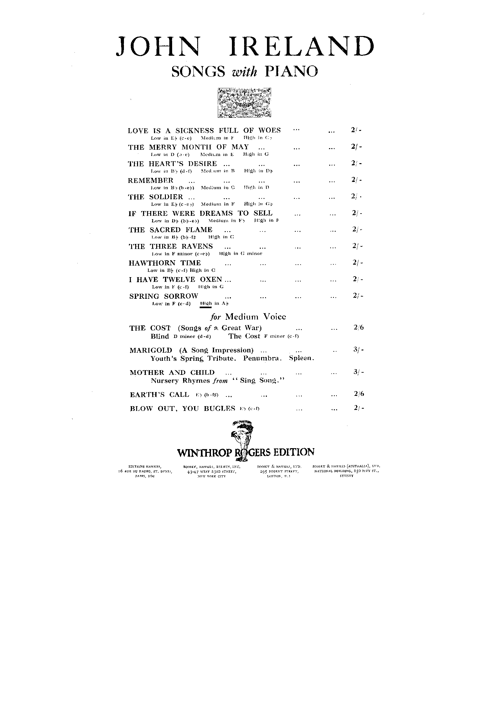 Publisher. Info. London: Winthrop Rogers, 1918. Plate W. R. 2905.