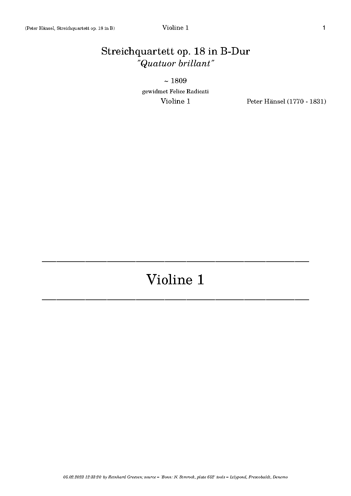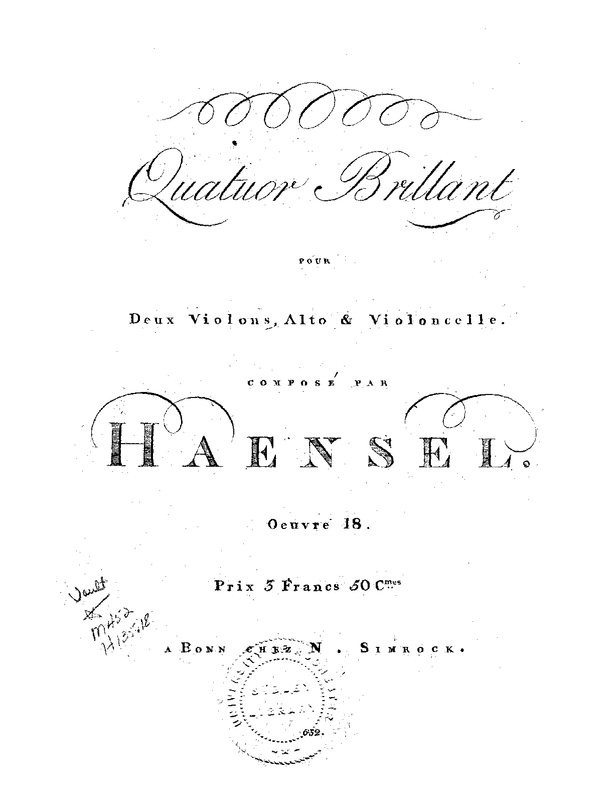 | Alternative. Title | Quatuor brilliant pour deux violons, alto & violoncelle |