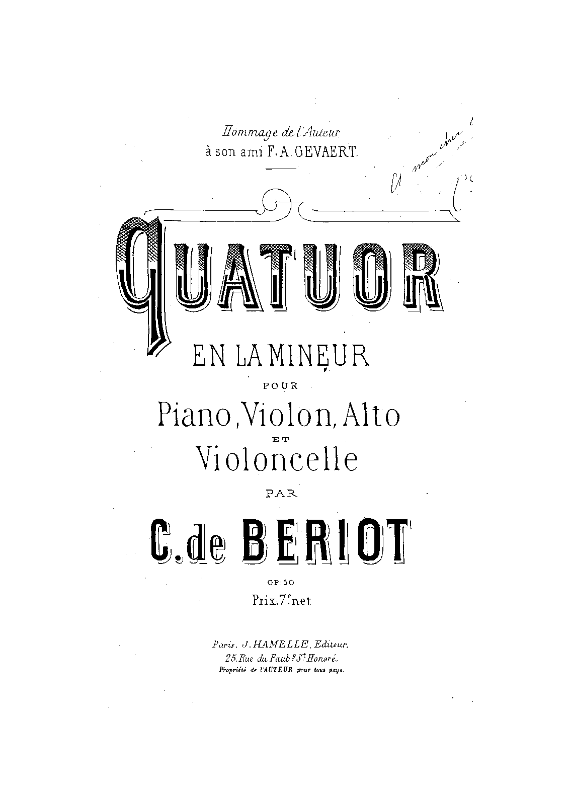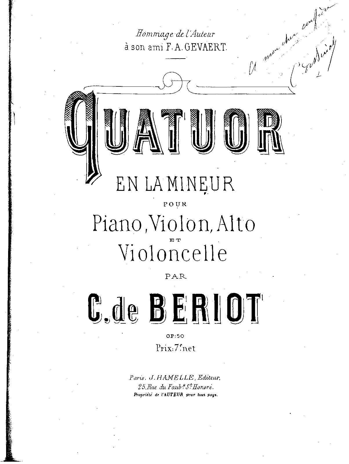 Piano Quartet in A minor, Op.50 (Bériot, Charles-Wilfrid)