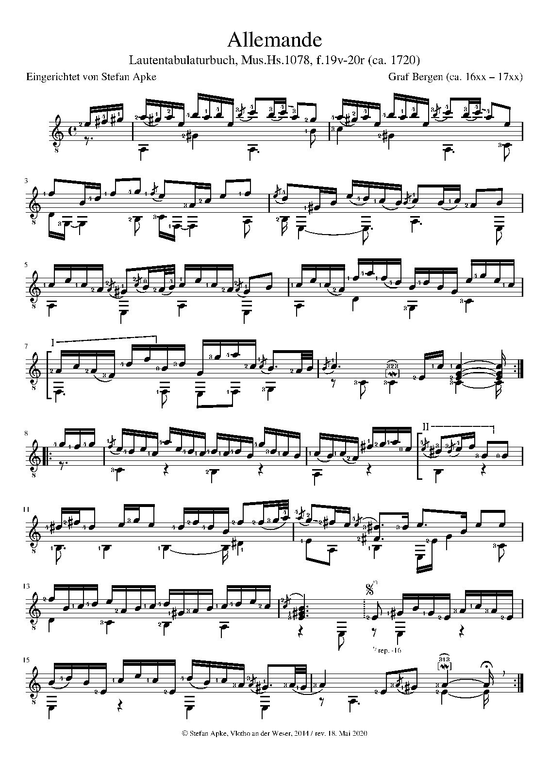 | First Publication | 1720 ca. in Lautentabulaturbuch, Mus.Hs.1078 (f.19v-23r) |