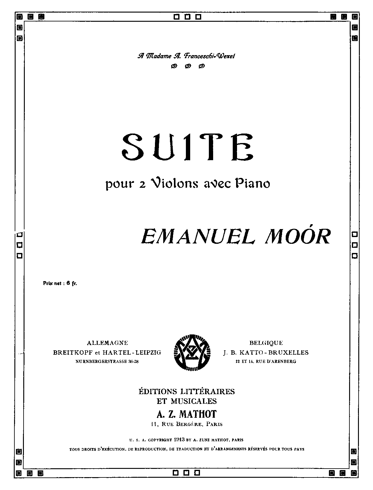 | Dedication | à Madame A. Franceschi-Wexel |