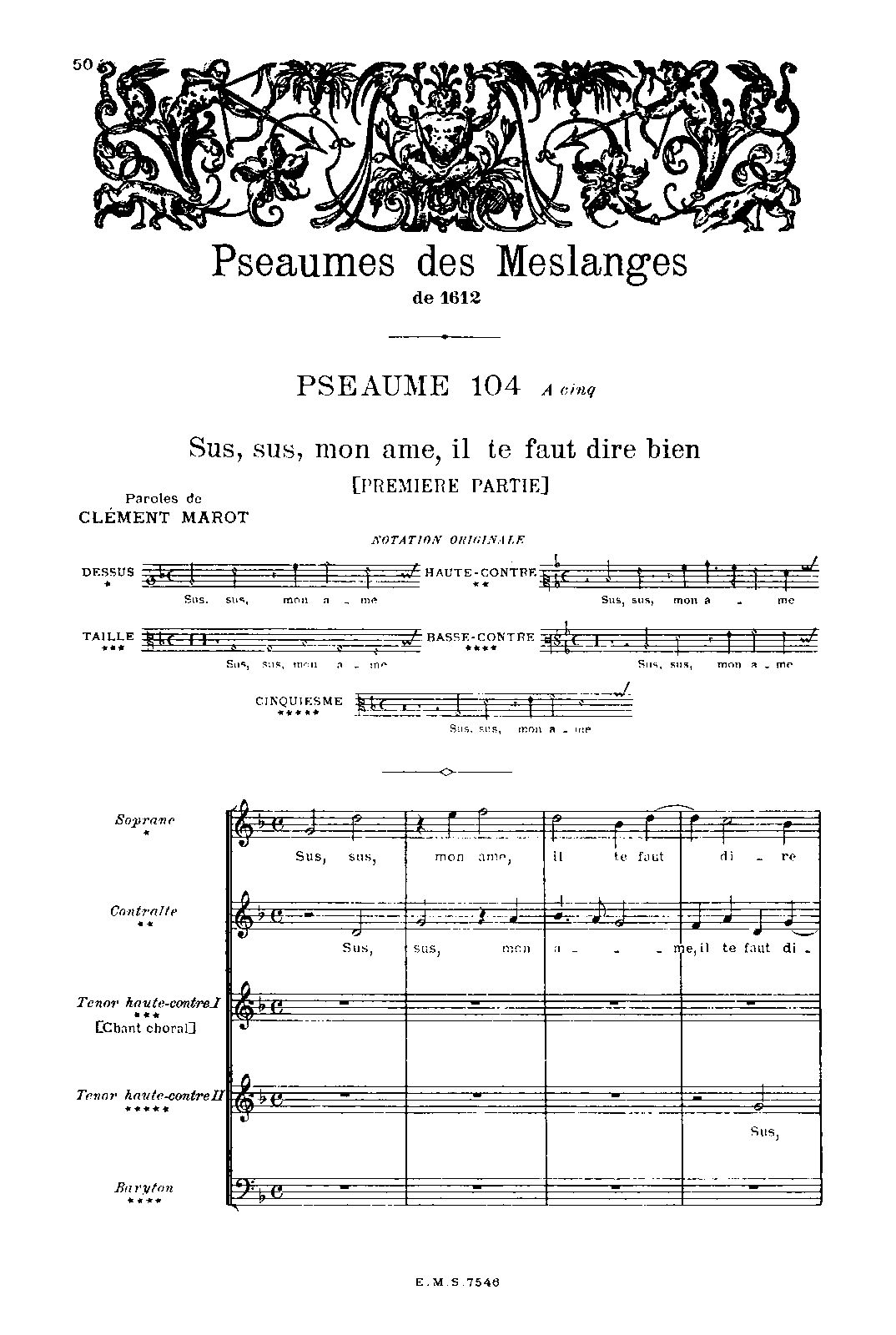 | Work Title | Sus, sus, mon ame, il te faut dire bien |