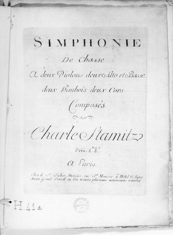 Simphonie de chasse à deux violons, deux alto [ou bassons] et basse, deux hautbois, deux cors