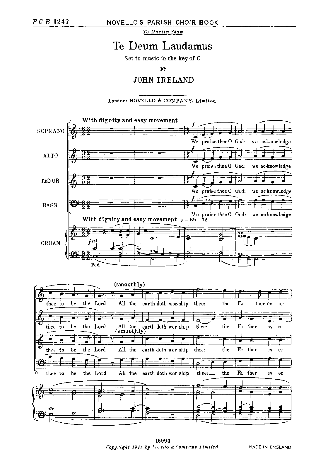 Publisher. Info. London: Novello, No. P.C.B. 1247, 1911. Plate 16994.