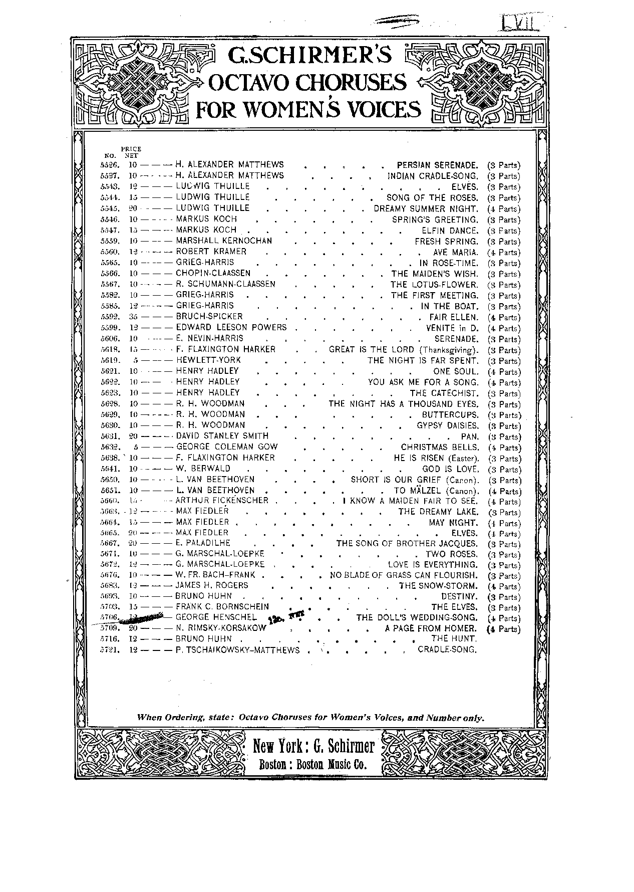 Publisher. Info. New York: G. Schirmer, 1912. Plate 23713.