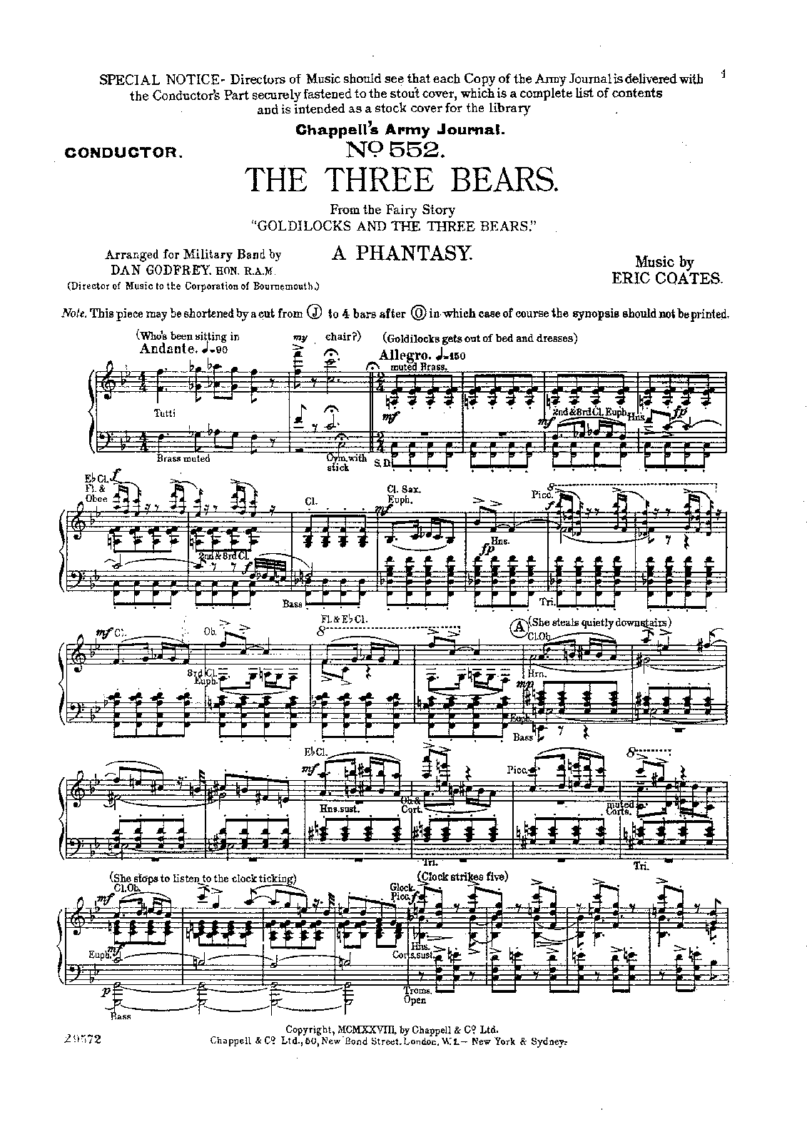 | First Publication. | 1926 – Chappell, plate 29145 (piano arrangement) 1927? – Chappell, plate 29189 (orchestral score) |