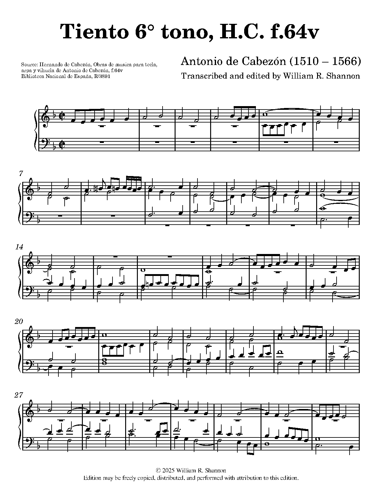 | Work Title | Tiento del sexto tono, H.C. f.64v |
