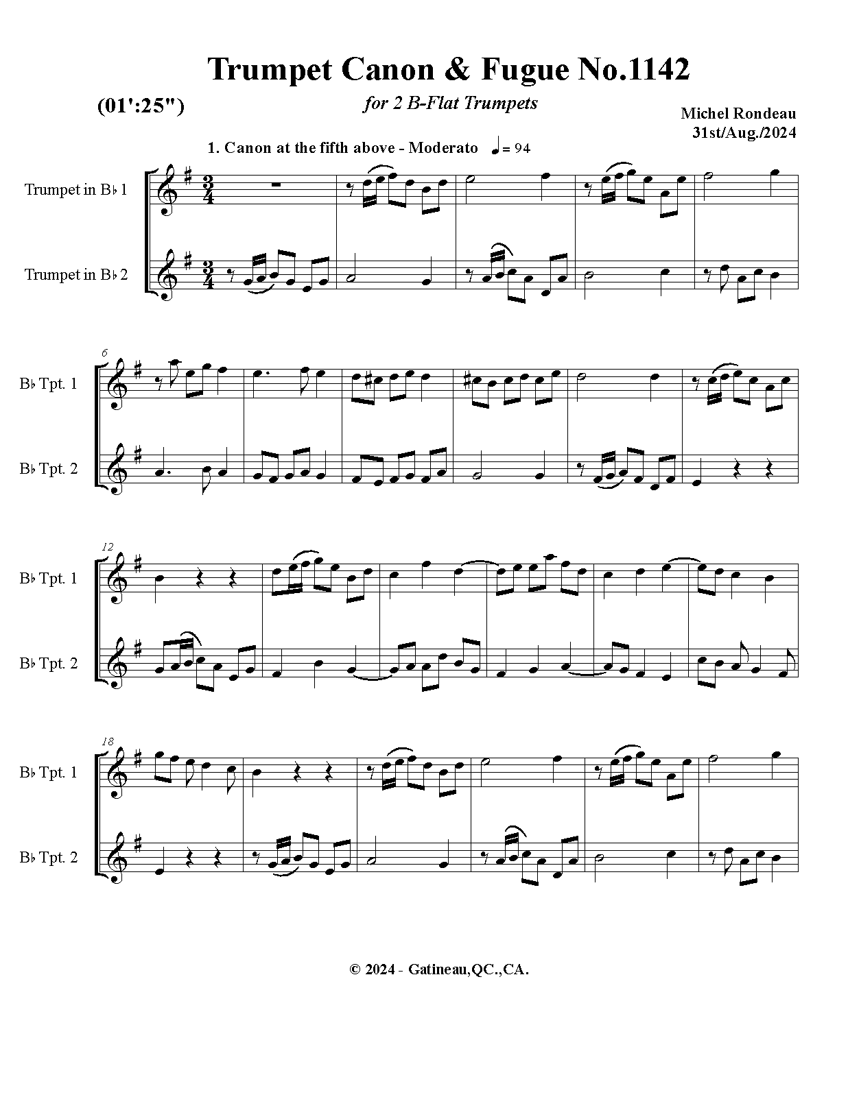 | Work Title | Trumpet Canon & Fugue No.1142 |