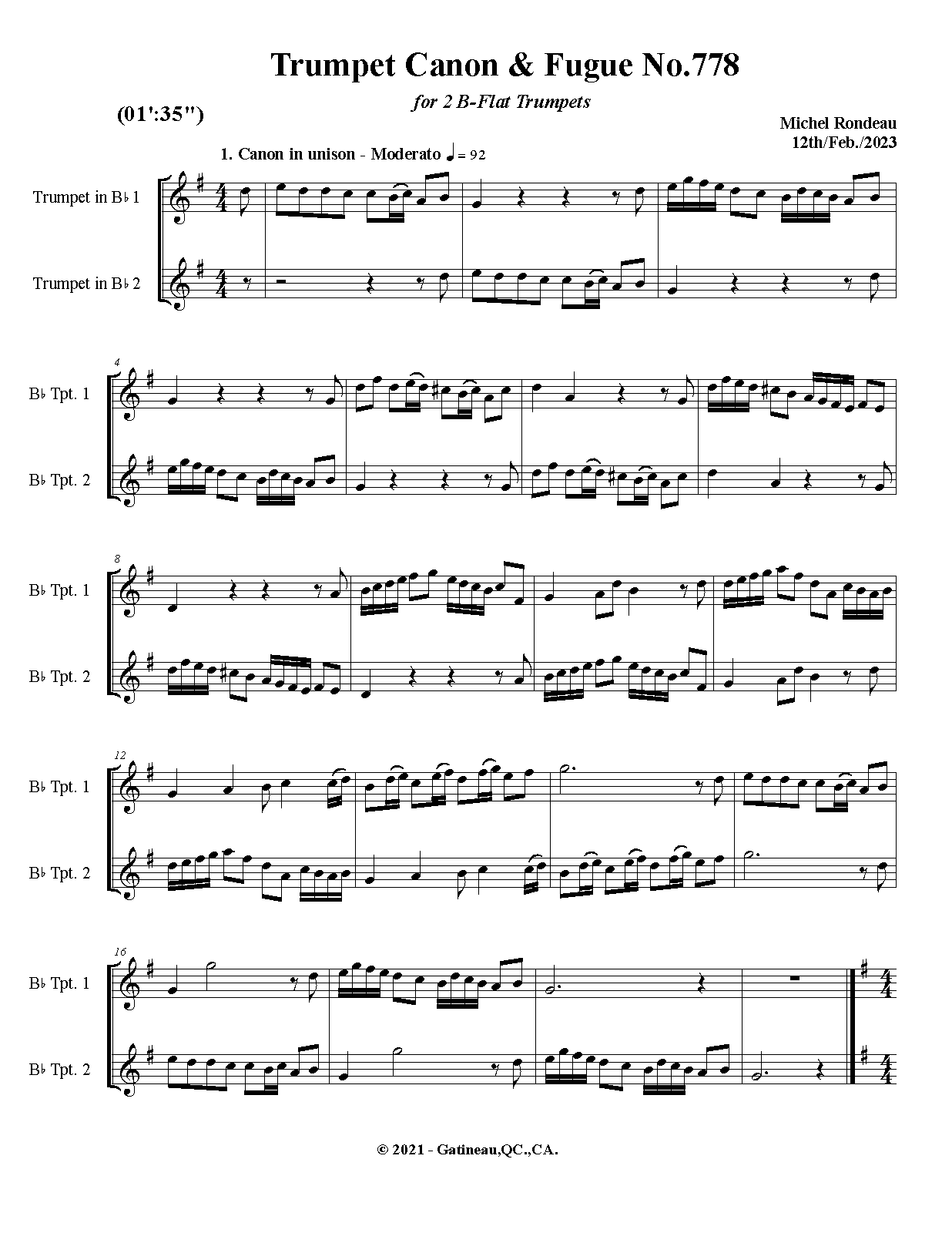 | Work Title | Trumpet Canon & Fugue No.778 |