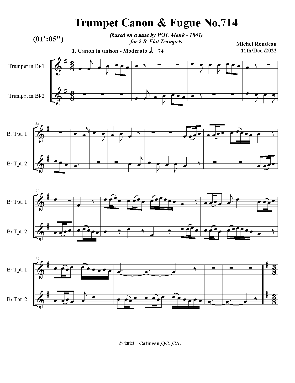| Work Title | Trumpet Canon & Fugue No.714 |