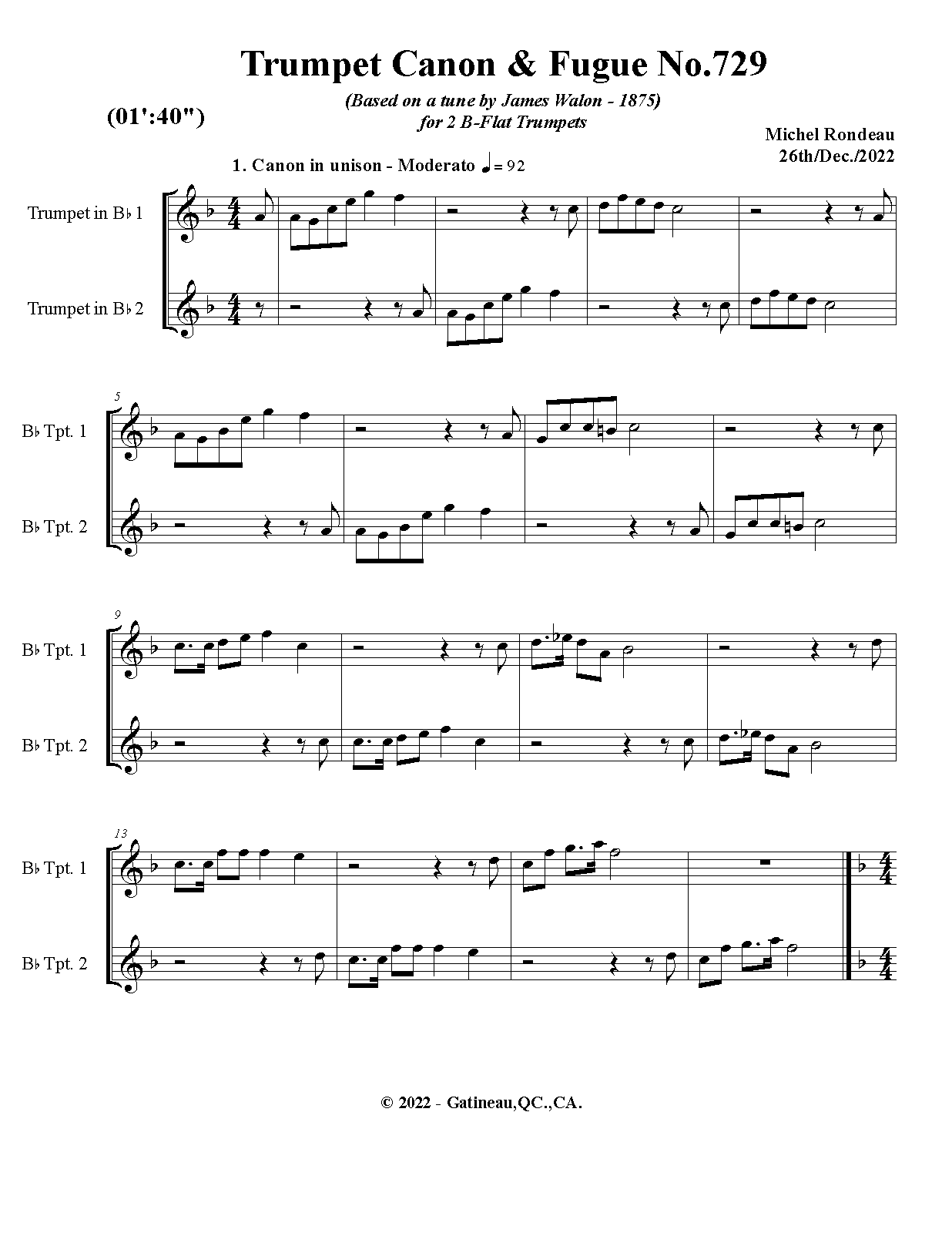 | Work Title | Trumpet Canon & Fugue No.729 |