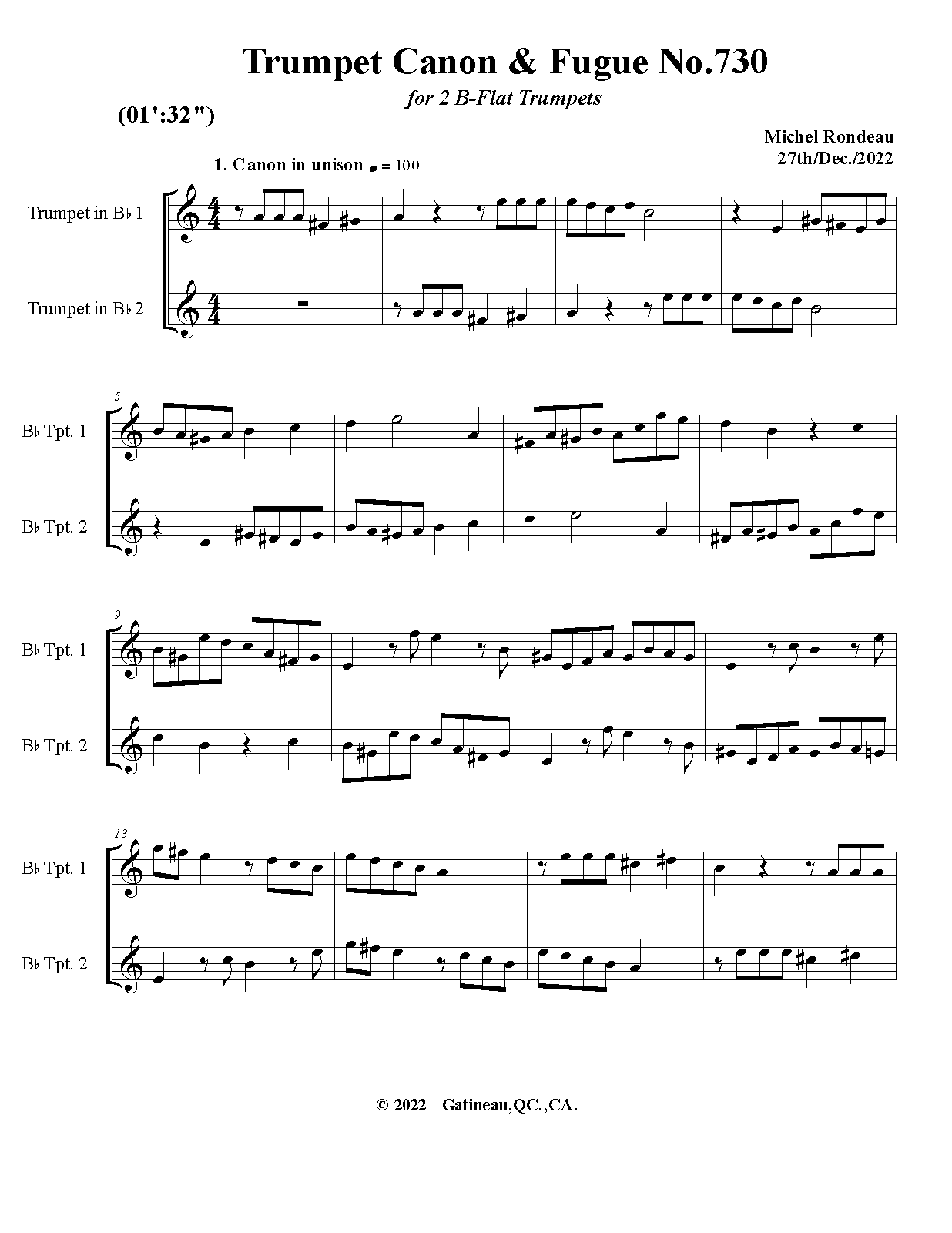 | Work Title | Trumpet Canon & Fugue No.730 |