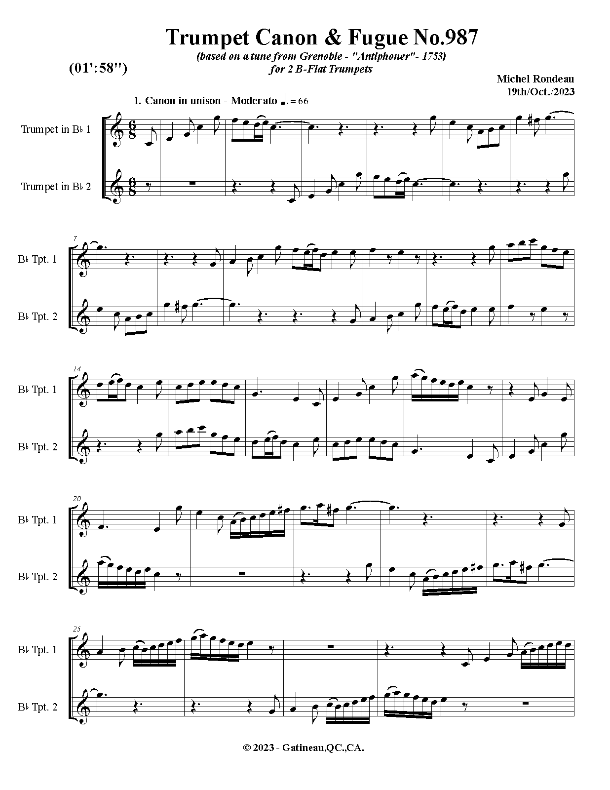 | Work Title | Trumpet Canon & Fugue No.987 |