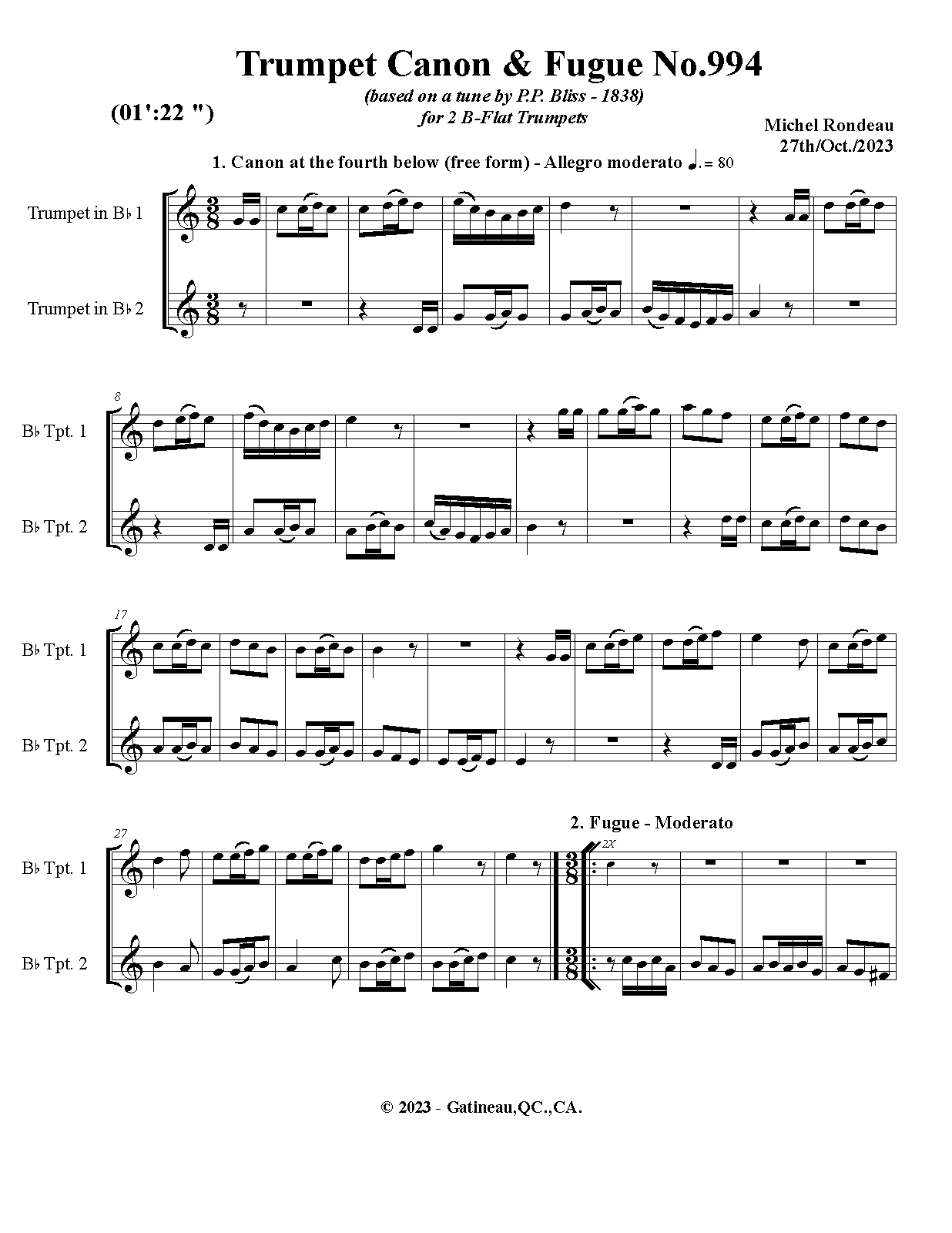 | Work Title | Trumpet Canon & Fugue No.994 |