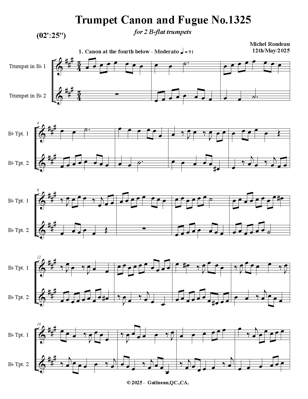 | Work Title | Trumpet Canon and Fugue No.1325 |
