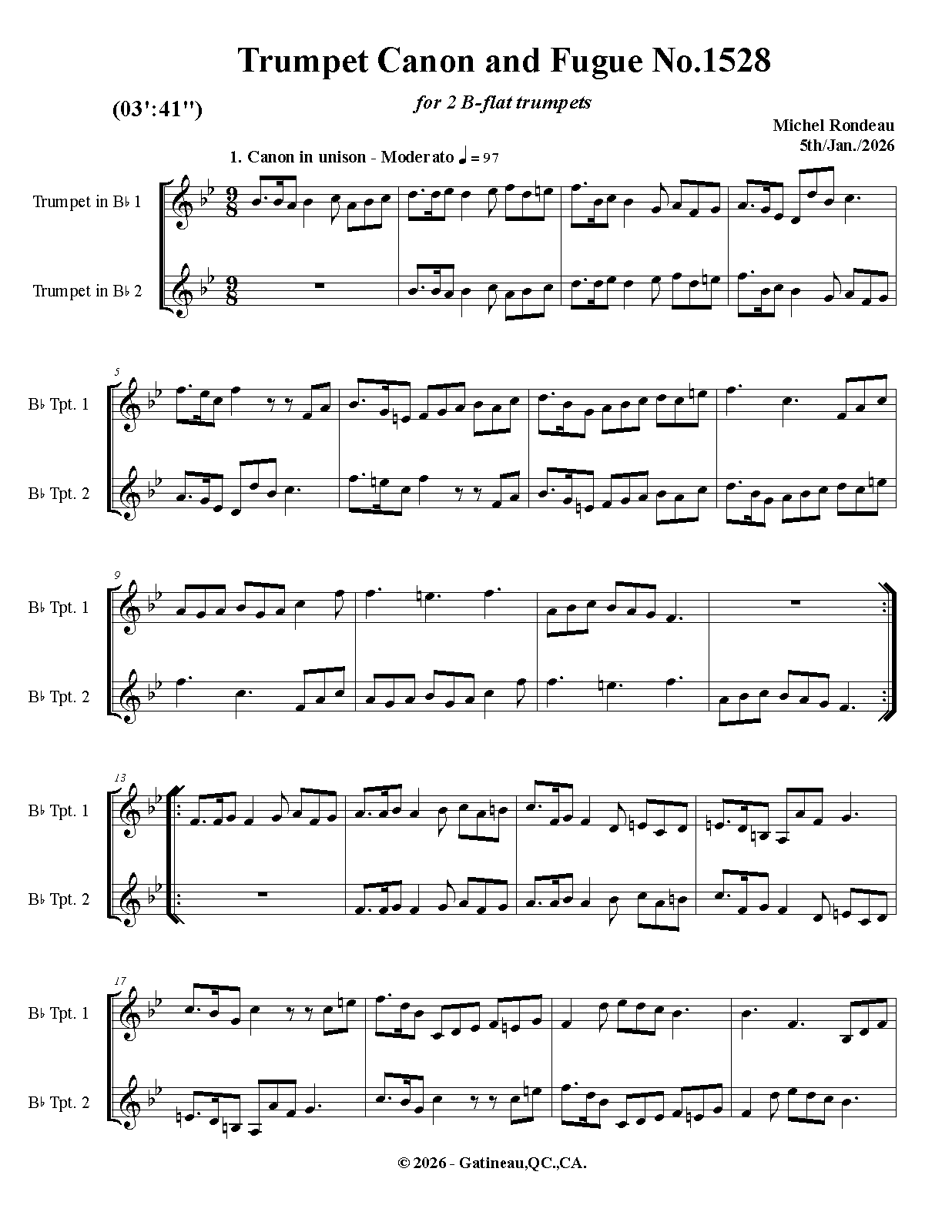 | Work Title | Trumpet Canon and Fugue No.1528 |