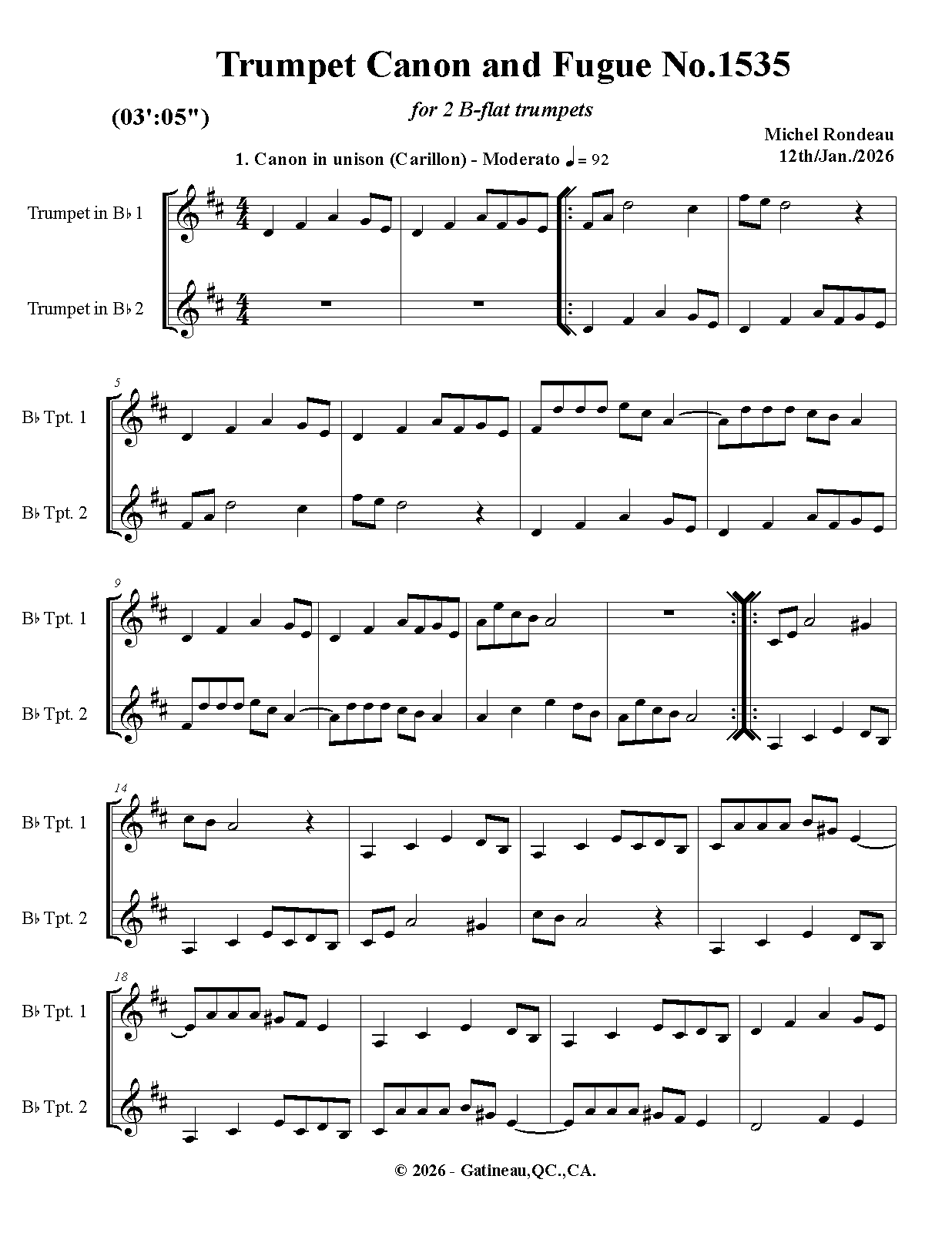 Trumpet Canon and Fugue No.1535 (Rondeau, Michel)