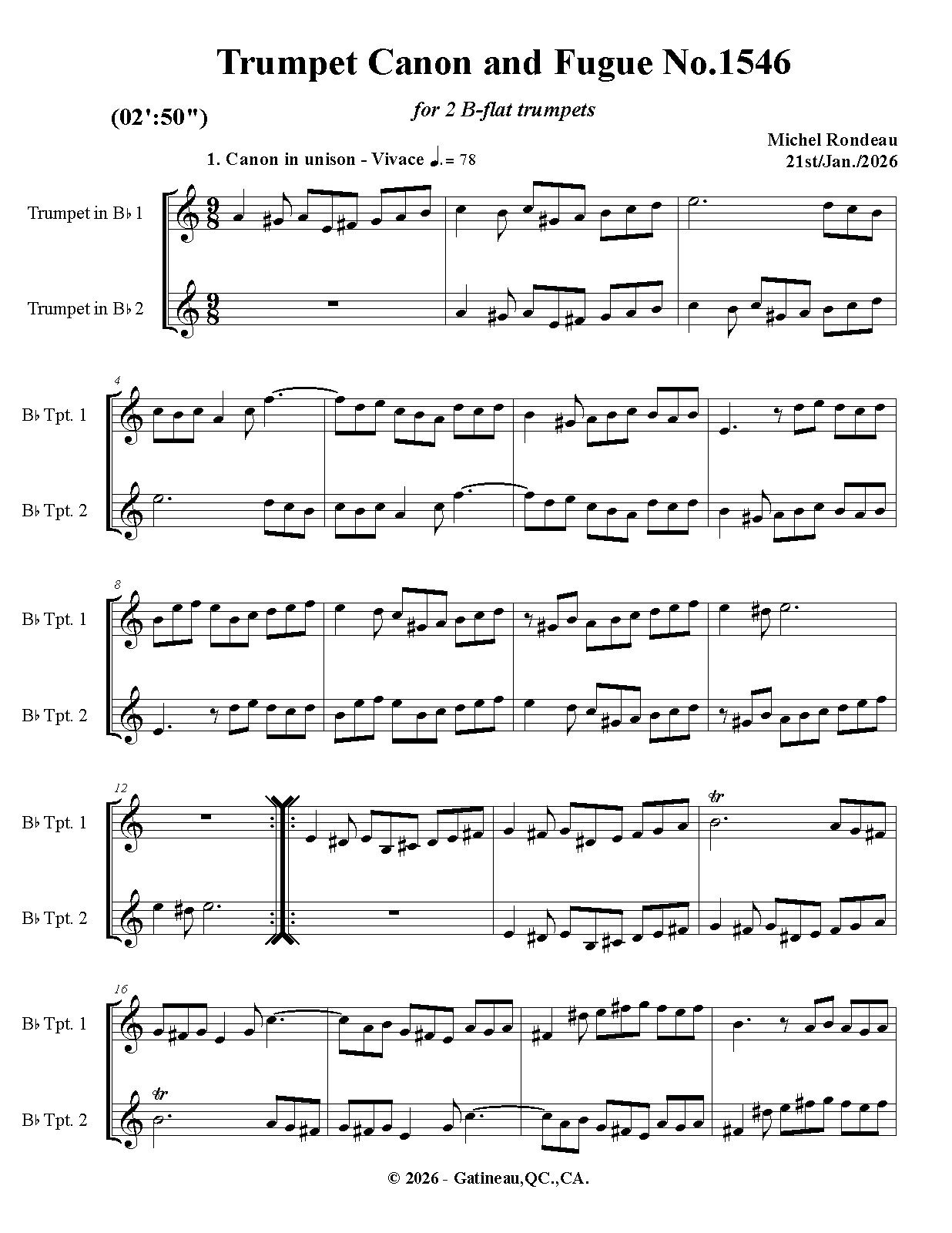 Trumpet Canon and Fugue No.1546 (Rondeau, Michel)