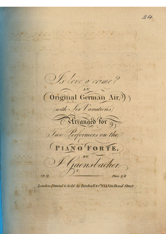 | Alternative. Title | Is love a Crime? An Original German Air, (with Six Variations) arranged for Two Performers on the Piano Forte |