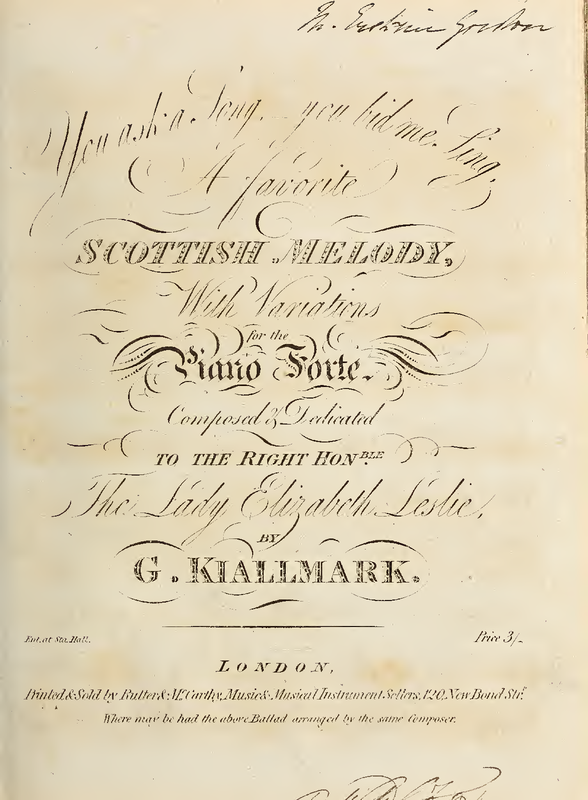 | Alternative. Title | You ask a Song, you bid me Sing, a favorite Scottish Melody, with Variations for the Piano Forte |