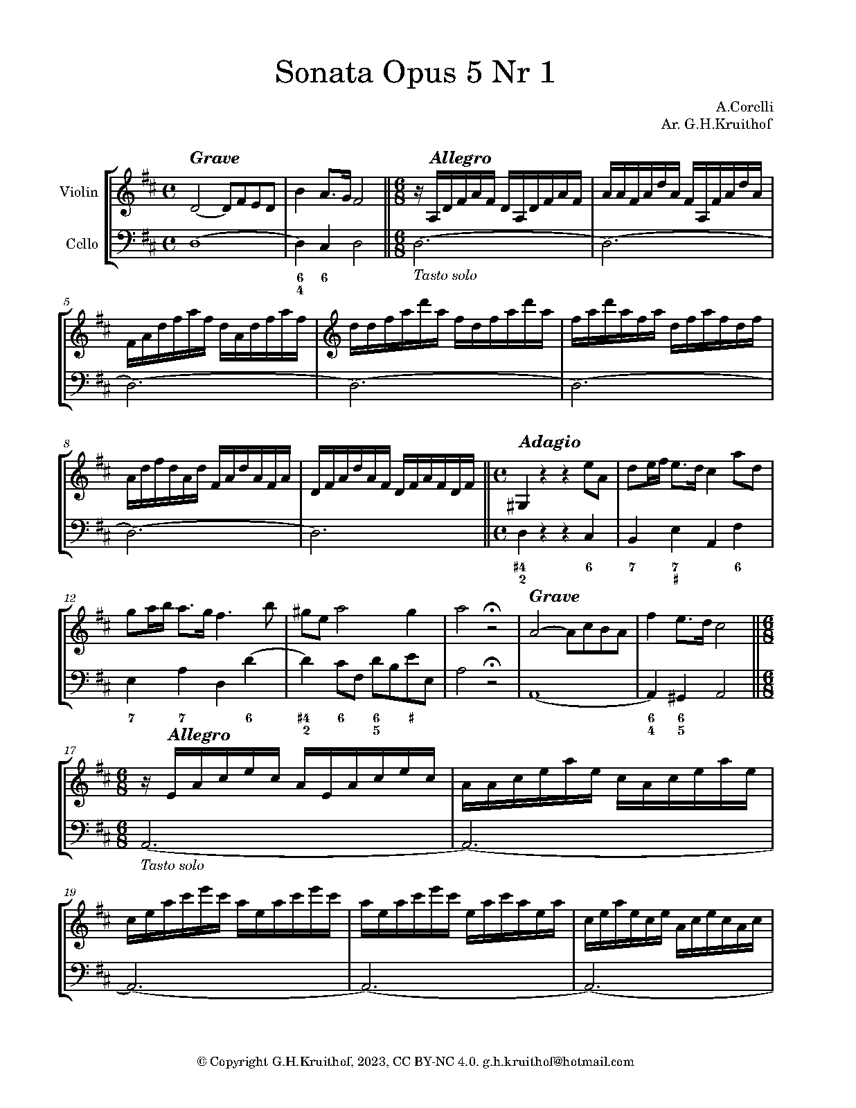 | First Publication | 1700 – No.1 of 12 Violin Sonatas, Op.5 |
