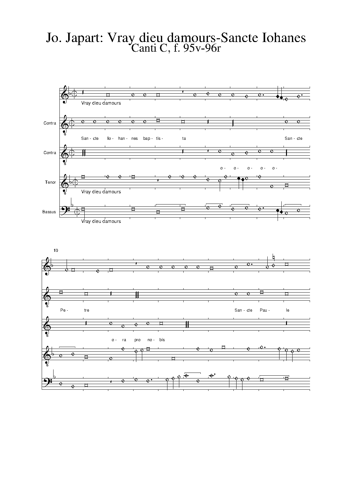 | Work Title | Vray dieu d'amours / Sancte Joannes Baptista |